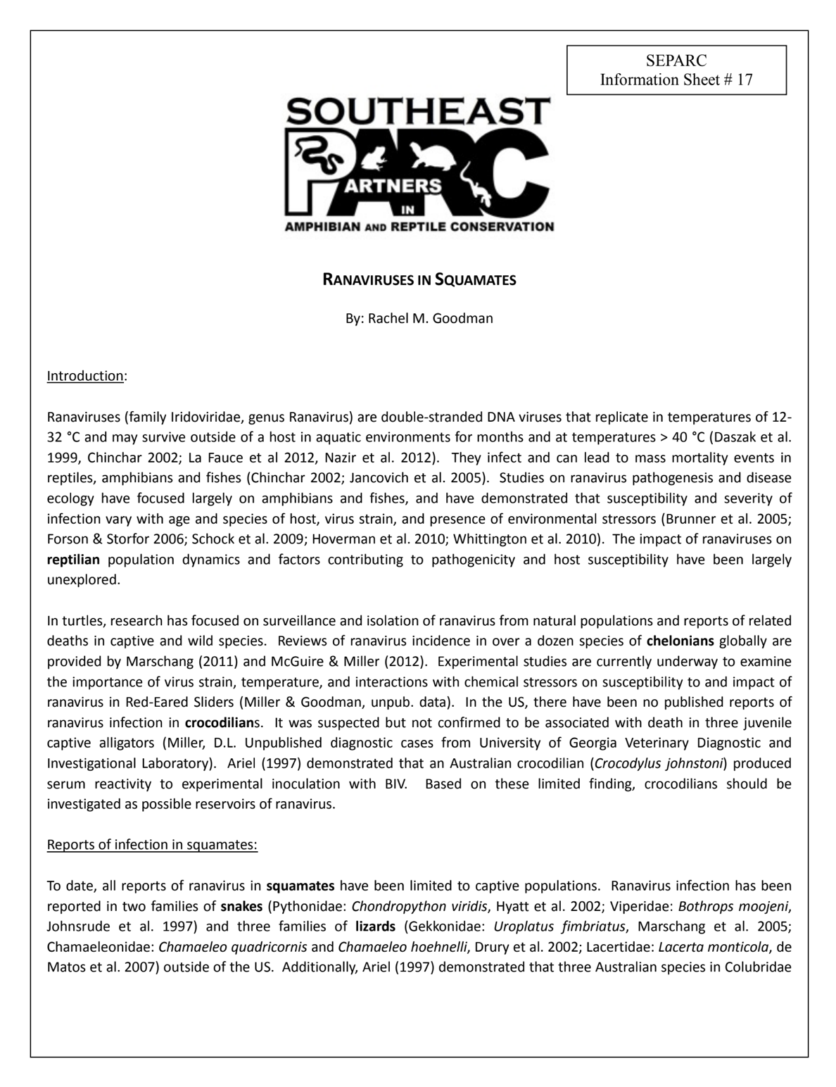 Disease Task Team SEPARC 11/9/24 Disease Task Team SEPARC 11/9/24 Ranaviruses in Wild Reptiles in the USA Read More